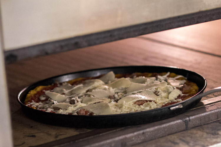Bobbe (mozzarella di bufala,porcini,salsiccia,pecorino a scaglie,pepe nero) € 7,50